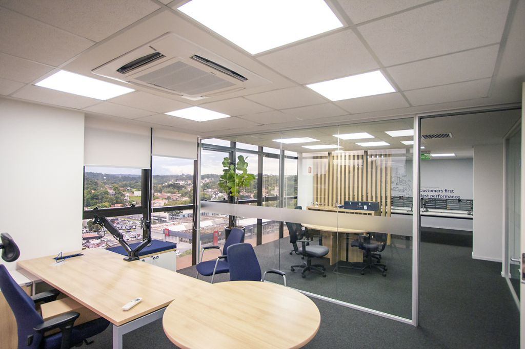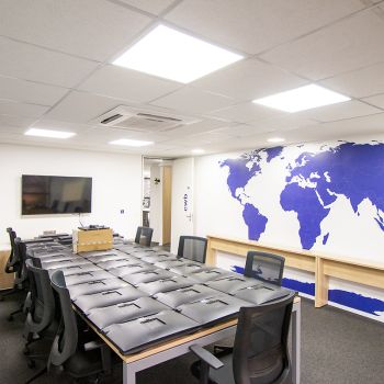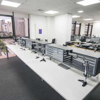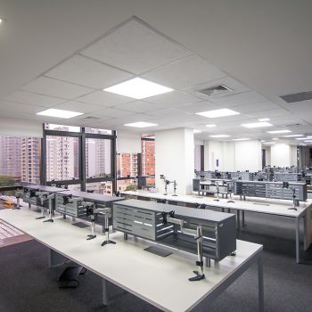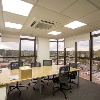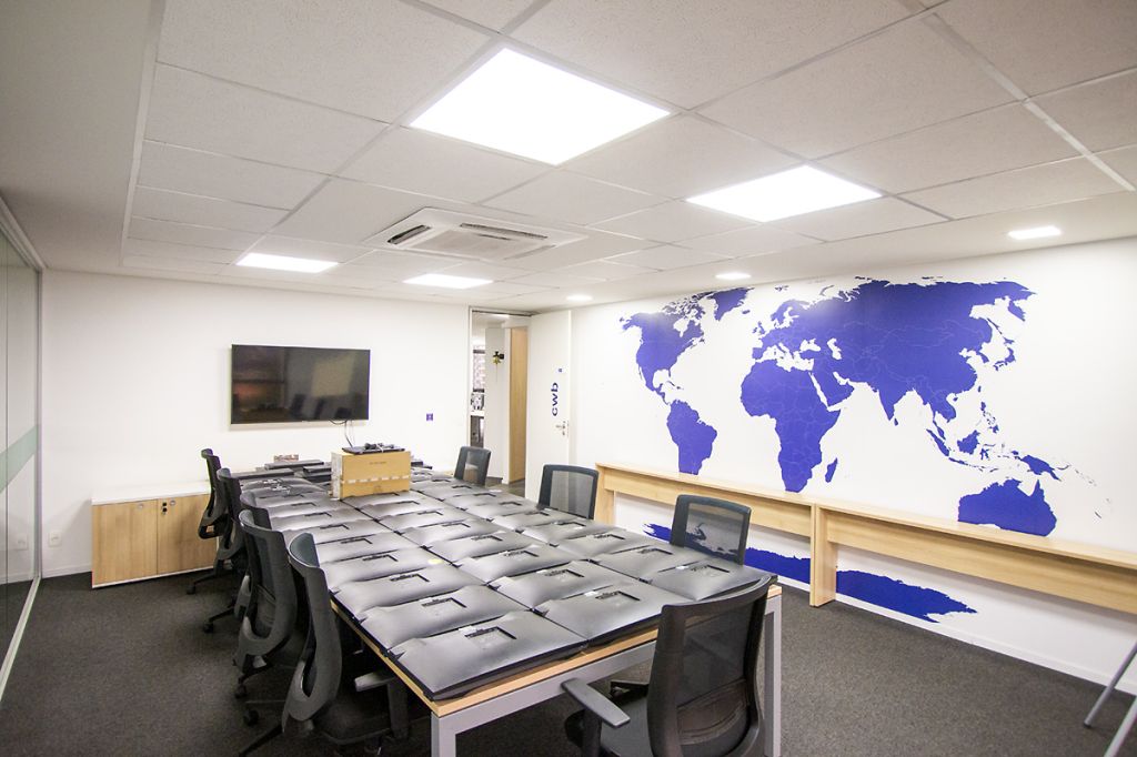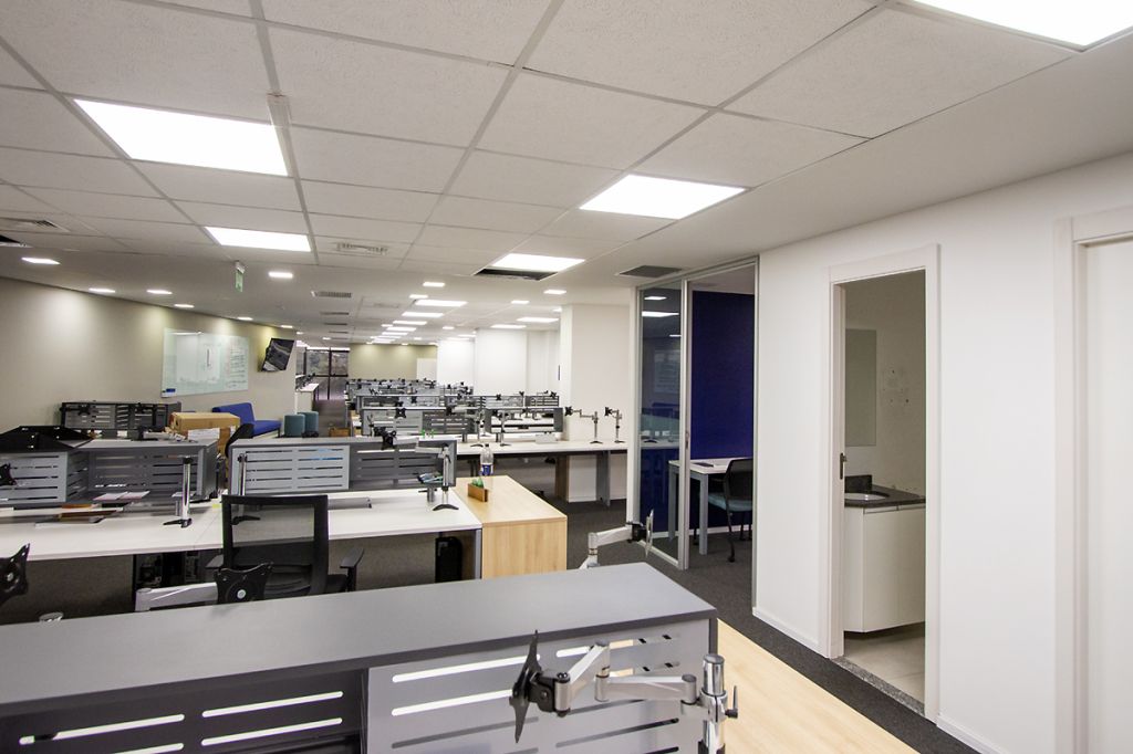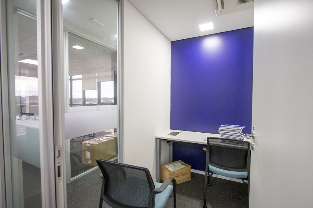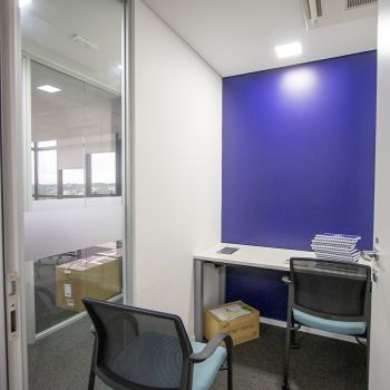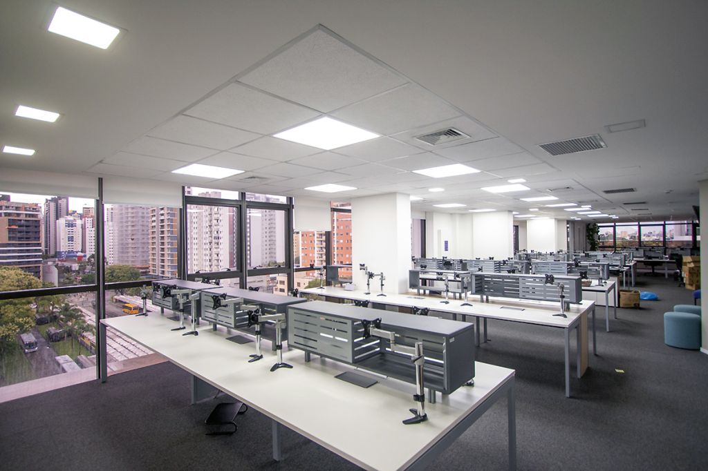 - 07 salas UNIFICADAS (469,68m² de área privativa): 54 posições de trabalho mobiliadas em espaço aberto, sala diretor 3.97 X 4.60 mobiliada, antessala 6.64 x 3.85 com mesa redonda, sala reunião 6.60 x 4.64 mobiliada, sala reunião menor 4.58 x 4.00 mobiliada e 02 cabines à prova de som;
