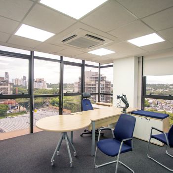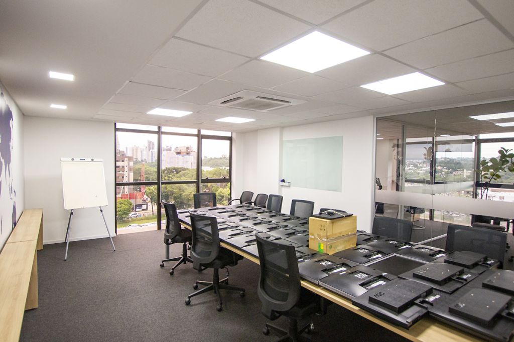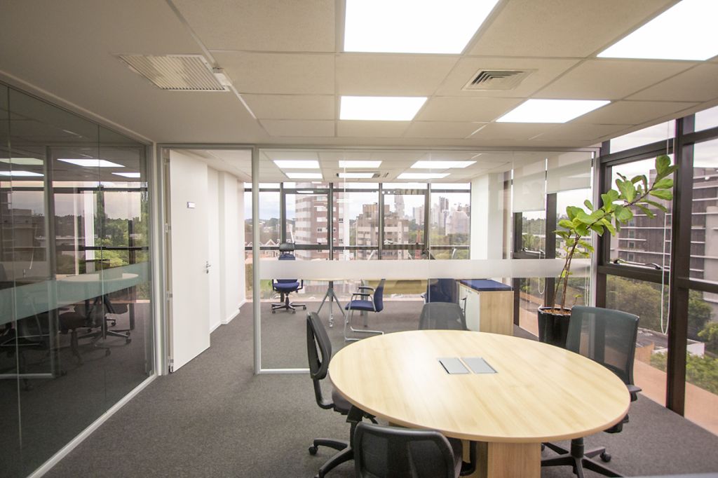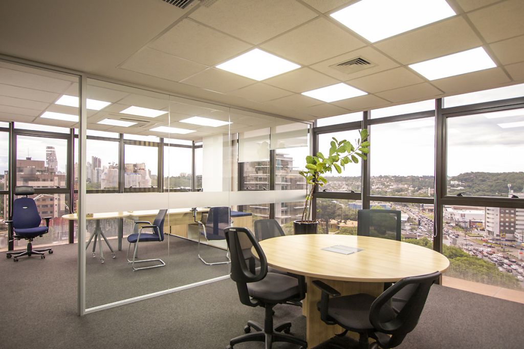 O EdifÃcio Lakeside é moderno com fachada em alumÃnio e vidro, e está localizado em região privilegiada no bairro Campina do Siqueira, em frente ao terminal e próximo ao Park Shopping Barigui. Possui estacionamento terceirizado para visitantes, hall de entrada com sistema de cadastramento e catracas de acesso, 05 elevadores, interfone, portaria 24 horas, circuito de segurança com vigia, mezanino com 02 salas de convenções unificáveis (para 70 a 150 pessoas) climatizadas e com cadeiras e sistema de projeção e sonorização, foyer para coffee break, banheiros e 02 salas de reunião para até 12 pessoas com cozinha e vestiários.