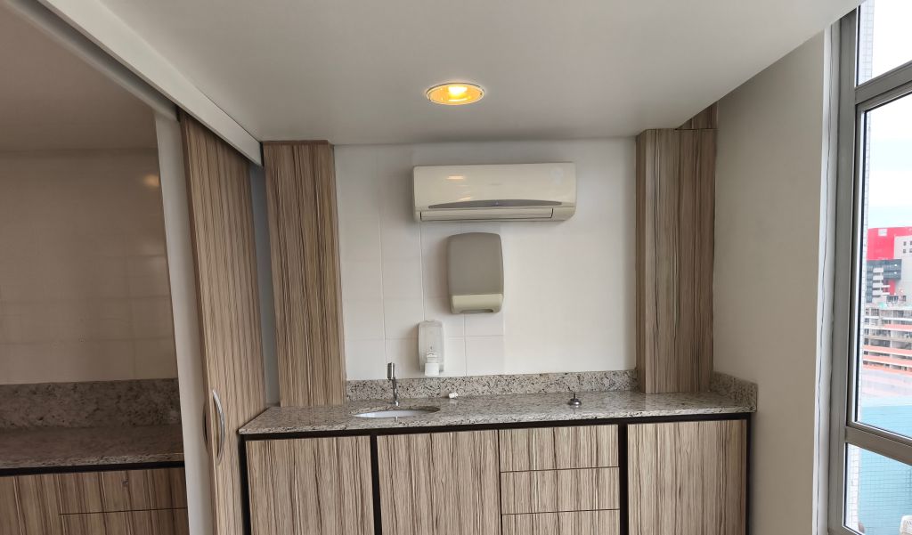 Excelente conjunto comercial de 152,34m² privativos, possui 06 salas amplas, ar-condicionado, sacada, ótima iluminação natural, hall de entrada e de circulação, 05 lavabos, copa, cozinha, 02 espaços para depósito e área de serviço. Não possui vaga de garagem.