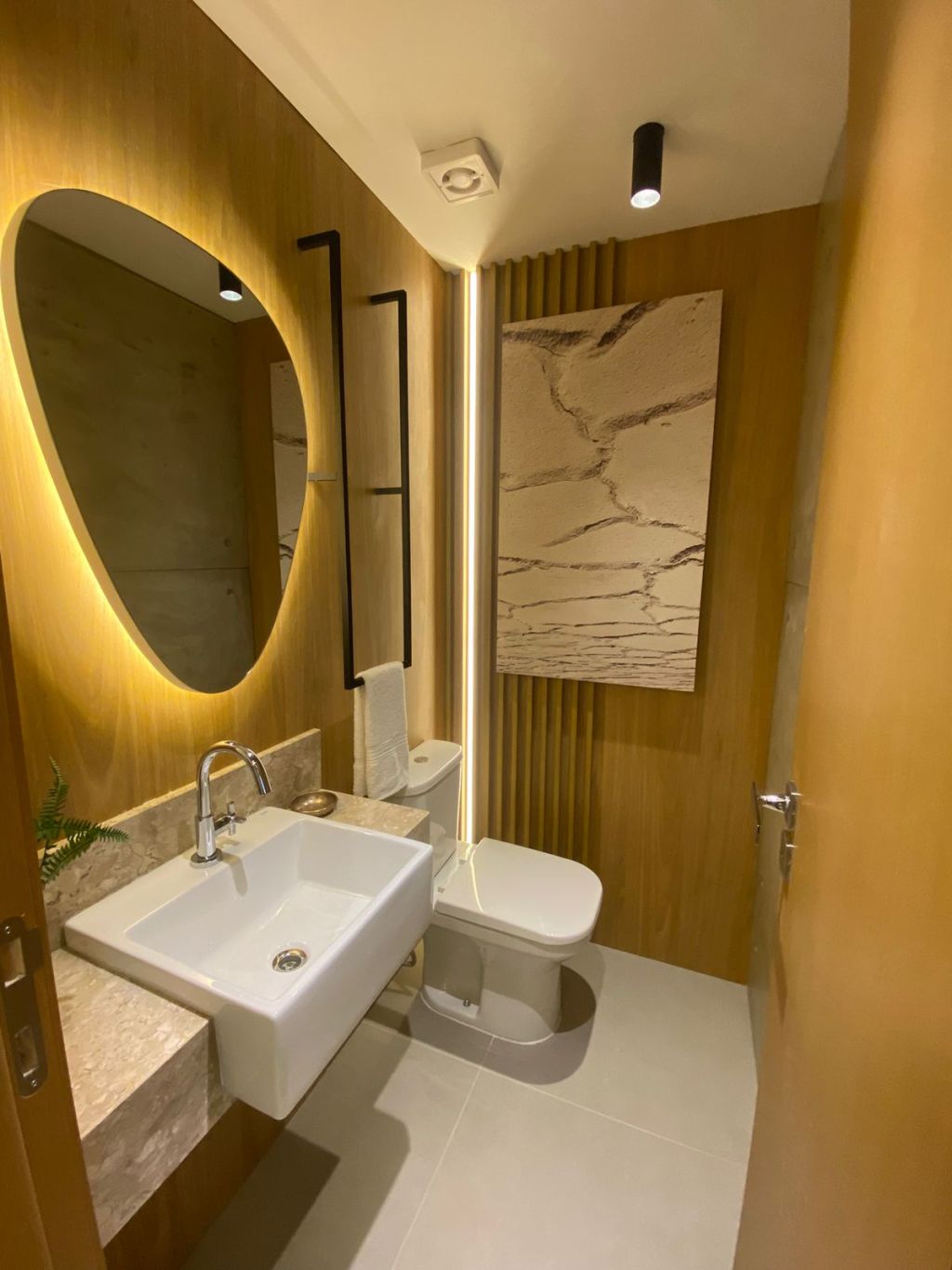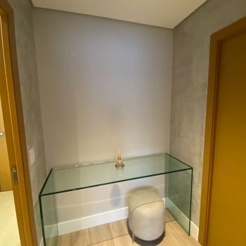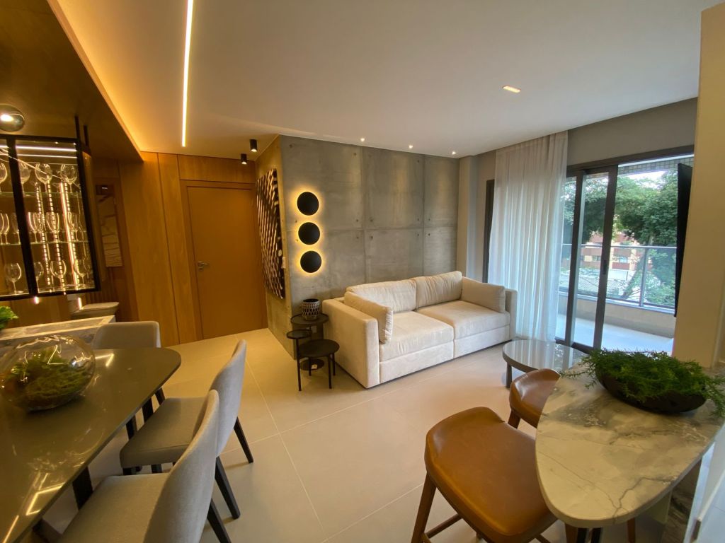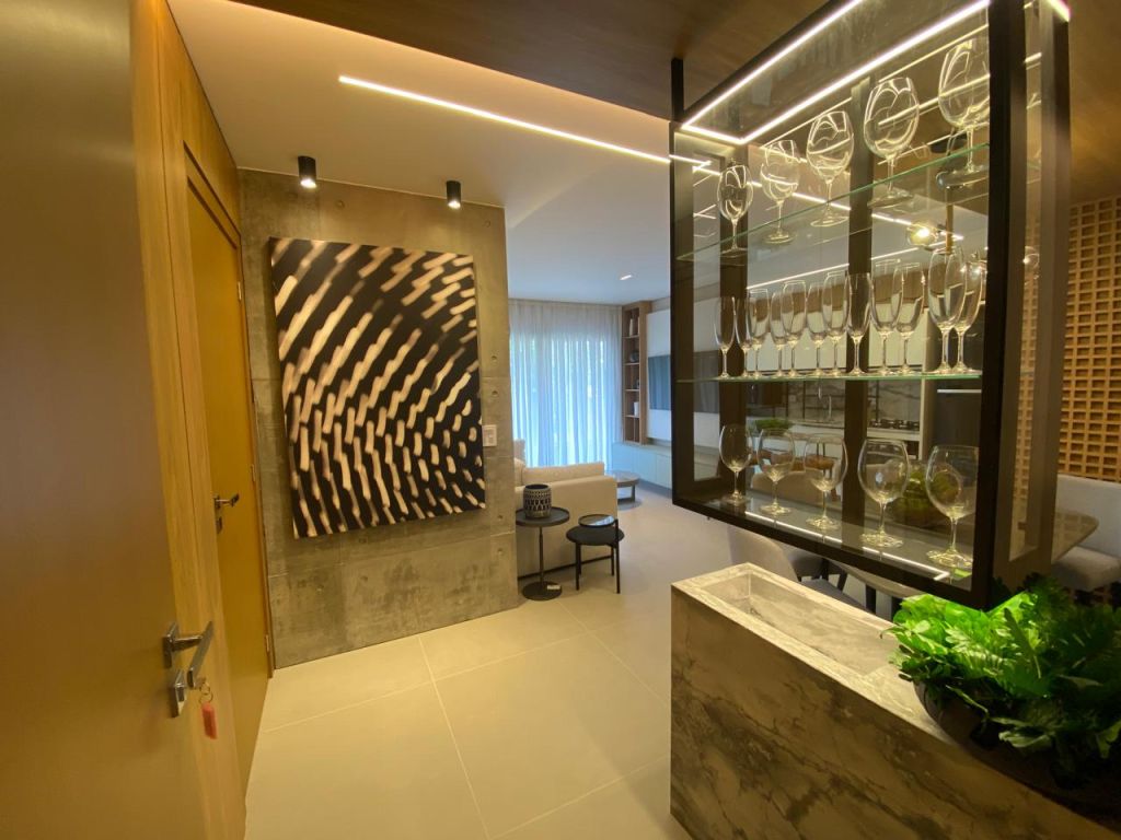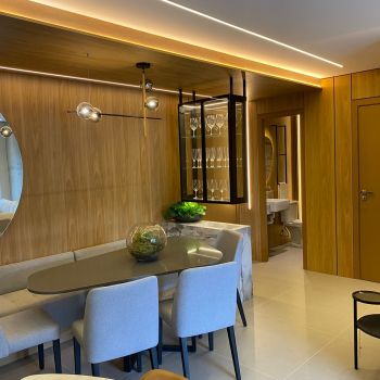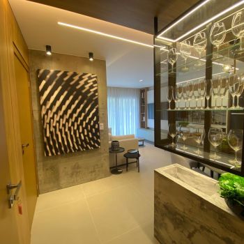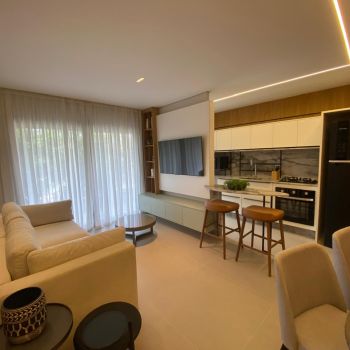 Apto. com 02 suÃtes, lavabo, estar social, cozinha e área de serviço.