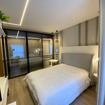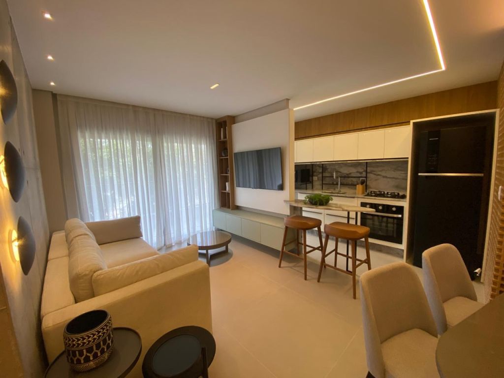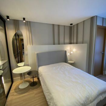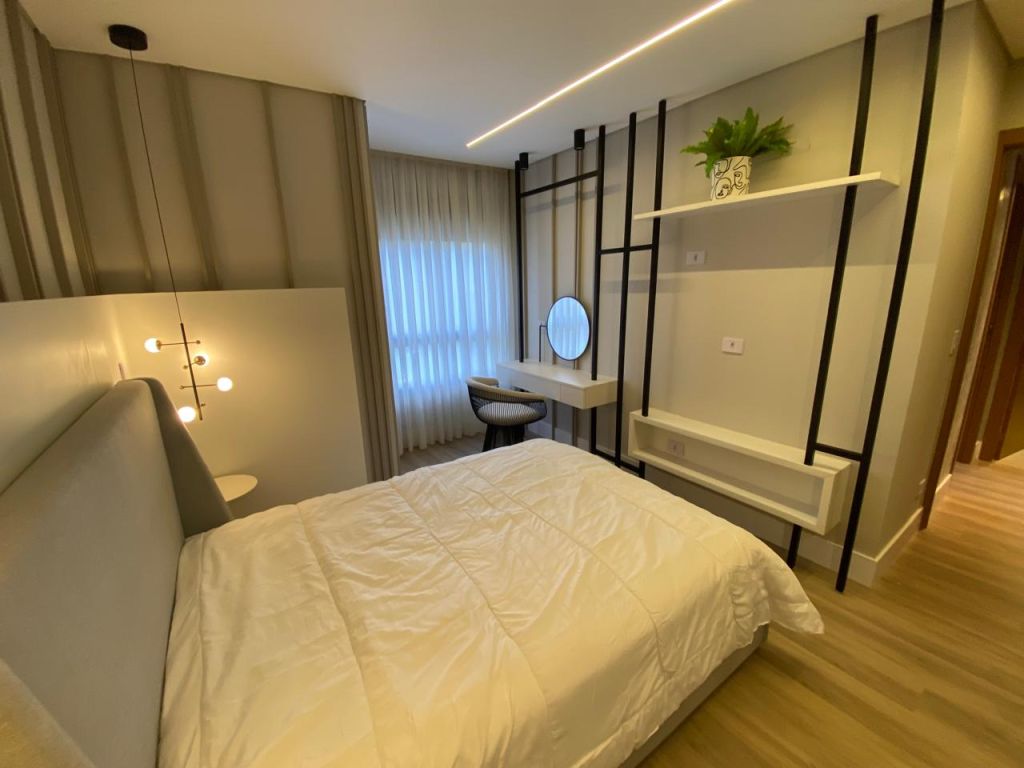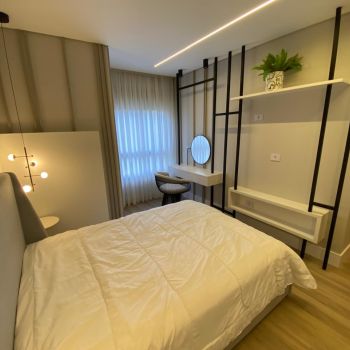 Totalmente mobiliado, decorado e equipado. (Eletrodomésticos, luminárias, cortinas, objetos decorativos).